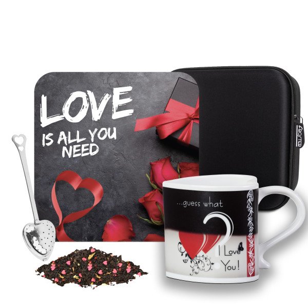 • Magický hrnek: ✨ Hrnek z porcelánu, který mění svůj vzhled, když se do něj nalije teplý nápoj. Odhalí se na něm romantický potisk a nápis: "Love is all you need." Má objem 300 ml a výšku 8,5 cm. Upozornění: 🚫 Není vhodný do myčky nádobí a mikrovlnné trouby.