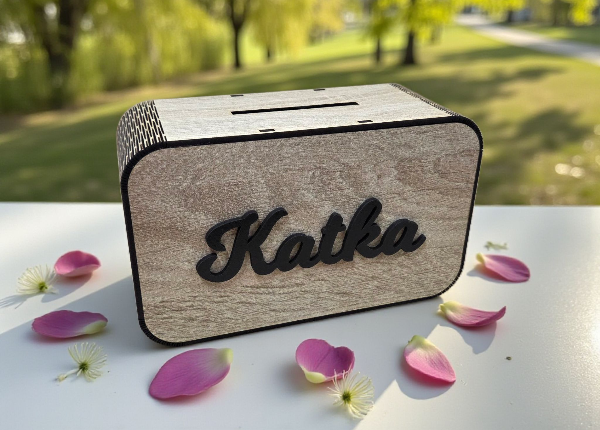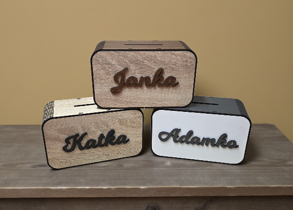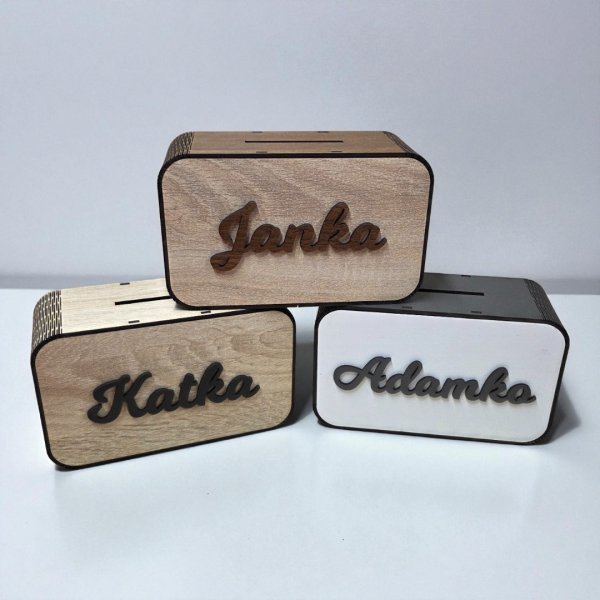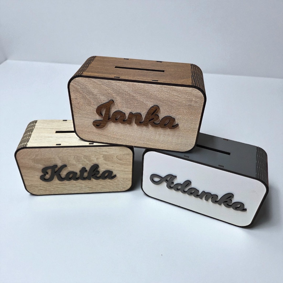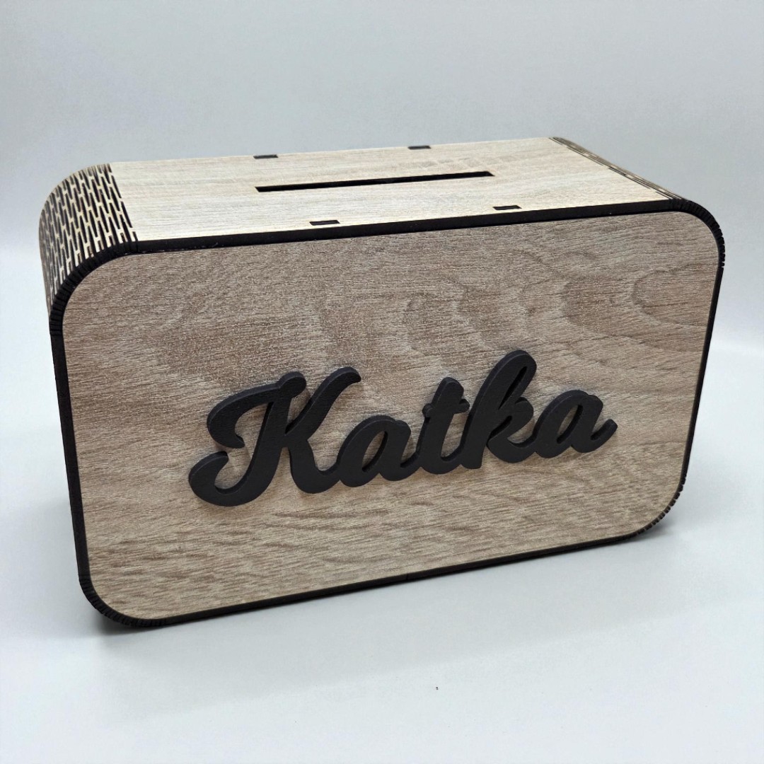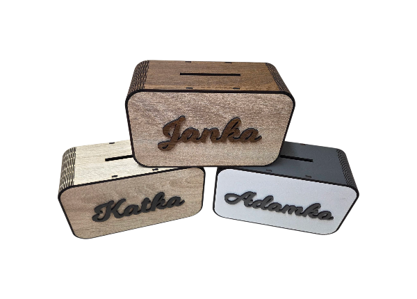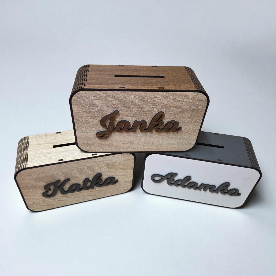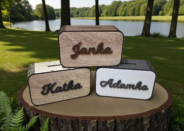 Dřevěná 3D pokladnička se jménem nebo nápisem | Dárek na míru