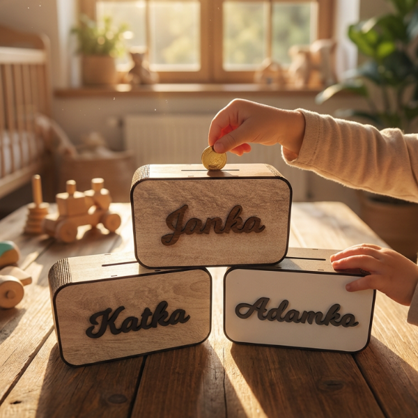 ✨ Originální 3D pokladnička ze dřeva – krásný a osobní dárek pro děti i dospělé.