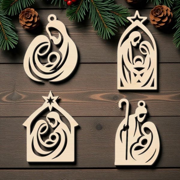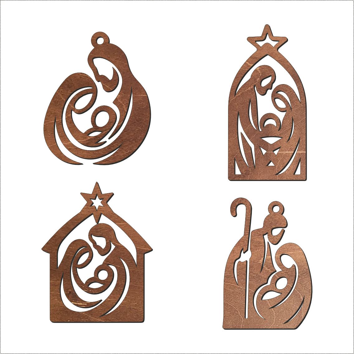 Ozdoby nabízíme samostatně ve čtyřech variantách, ze kterých si můžete vybrat podle svého vkusu (vzor 1, vzor 2, vzor 3 nebo vzor 4). Každý motiv zobrazuje jinou podobu Svaté rodiny, betléma či pastýře s holí.