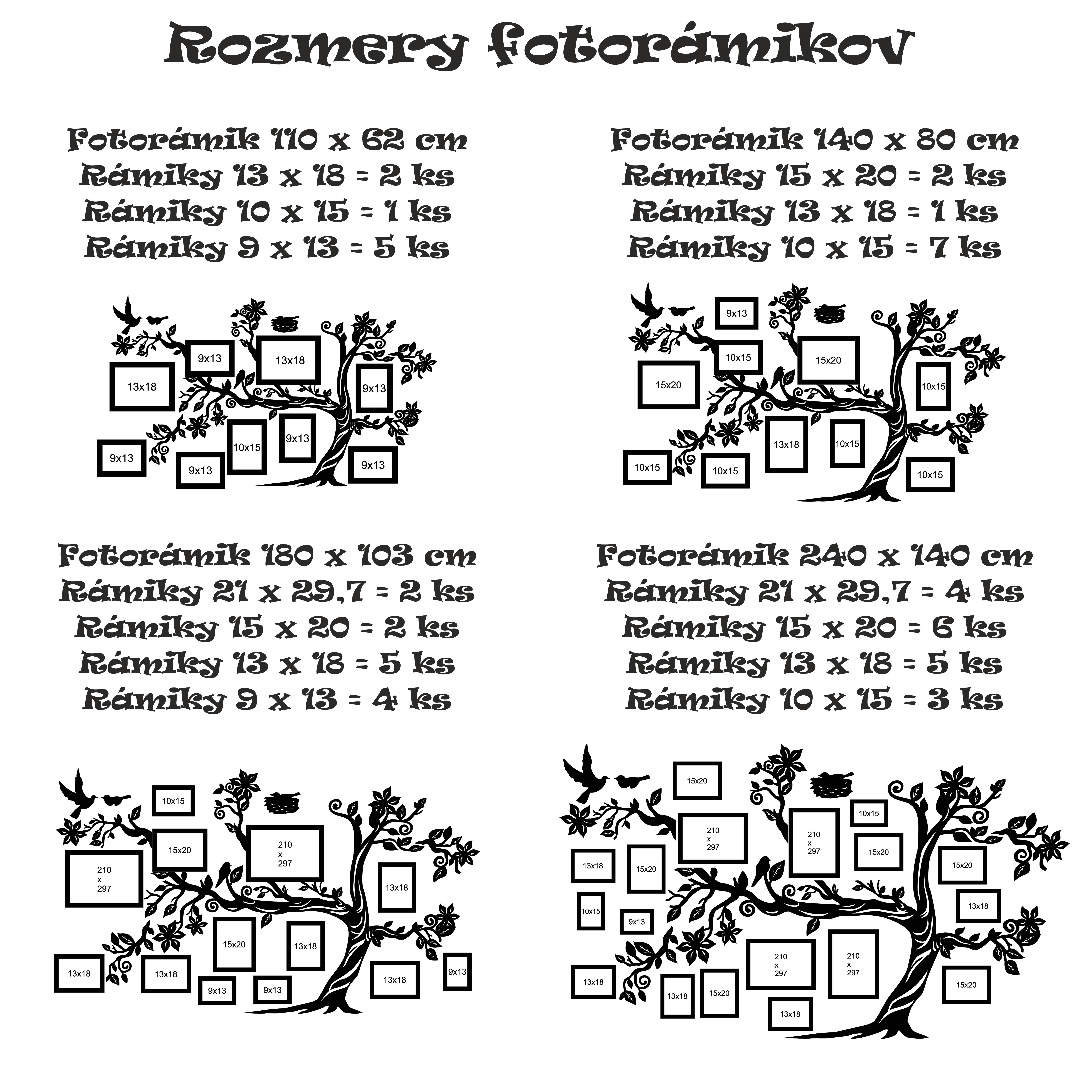 • rozměry fotorámečků a velikosti fotek jsou zobrazeny v galerii