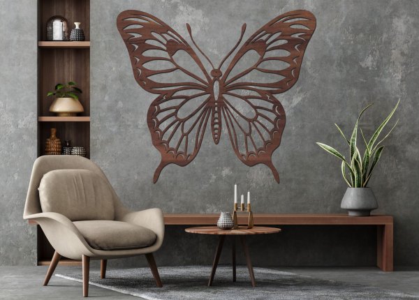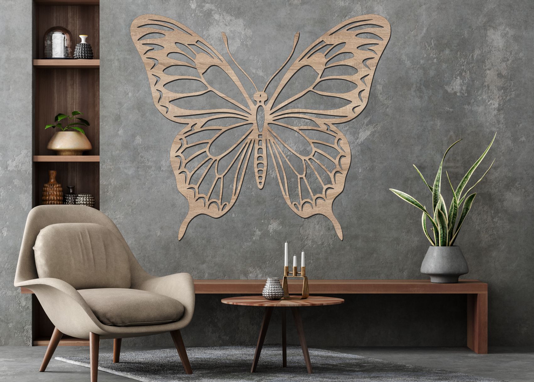 Dřevěný obraz – Elegantní motýl je krásná a detailní dekorace, která dodá interiéru jemnost a eleganci. Precizně propracované křídla vytvářejí vizuálně bohatý motiv vhodný do ložnice, obývacího pokoje nebo předsíně.