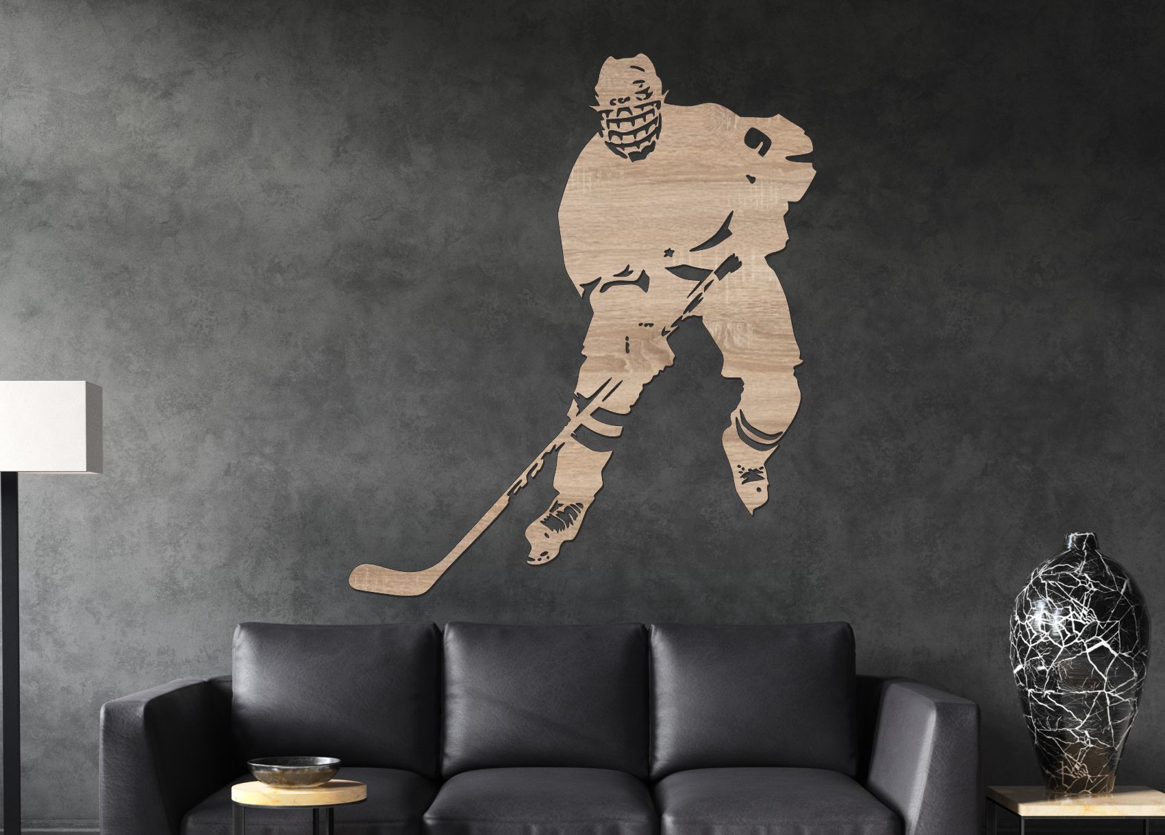 Dřevěný obraz hokejista v akci – energie, pohyb a sportovní duch ze dřeva