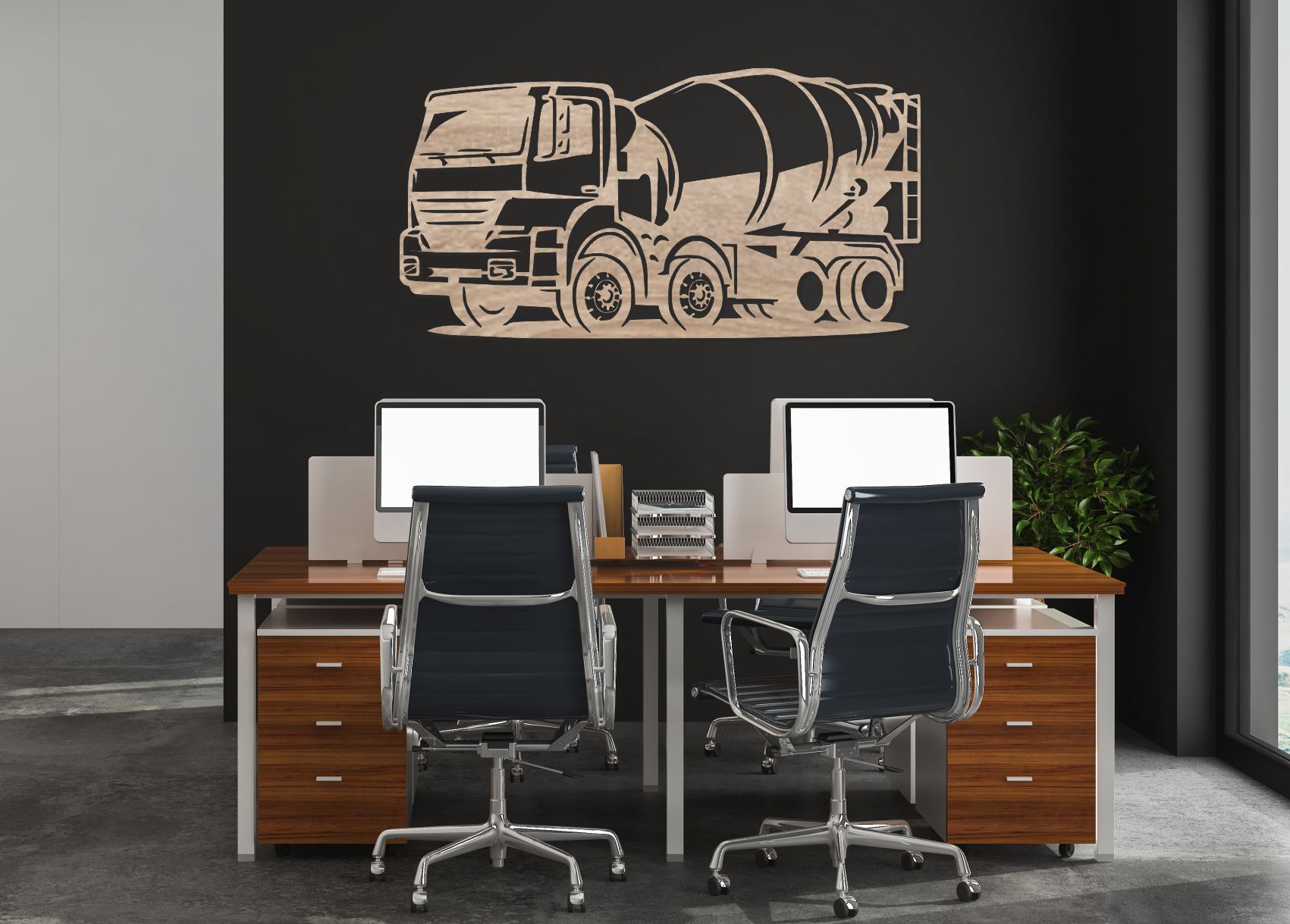 🚧 Dřevěný obraz na stěnu – Domíchávač betonu (Míchačka) je originální dekorace pro všechny, kteří obdivují stavební techniku. Motiv znázorňuje nákladní auto s bubnovou míchačkou, které je typickým symbolem stavebnictví. Hodí se do dětského pokoje, kanceláře, dílny nebo garáže.
