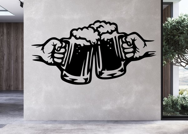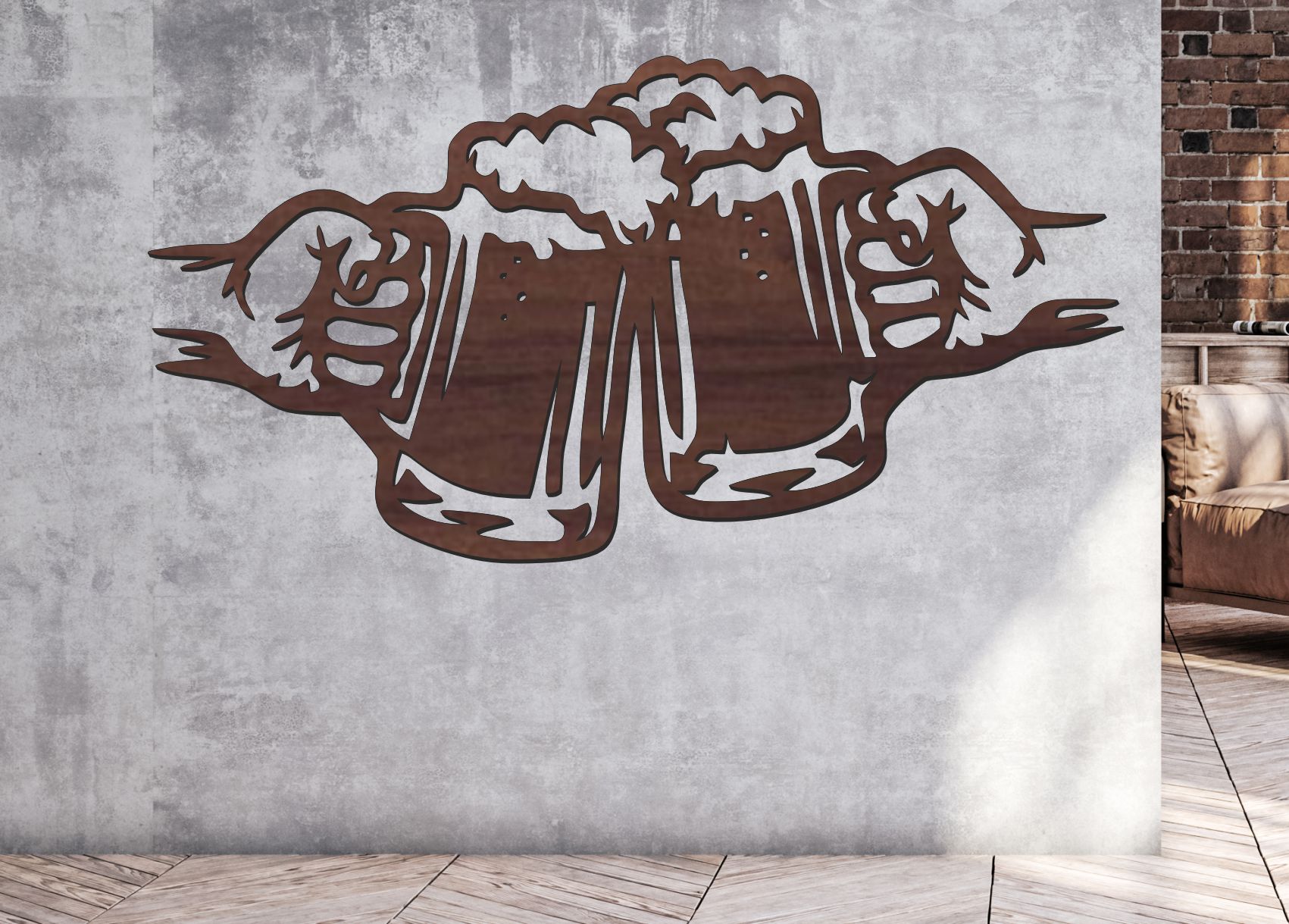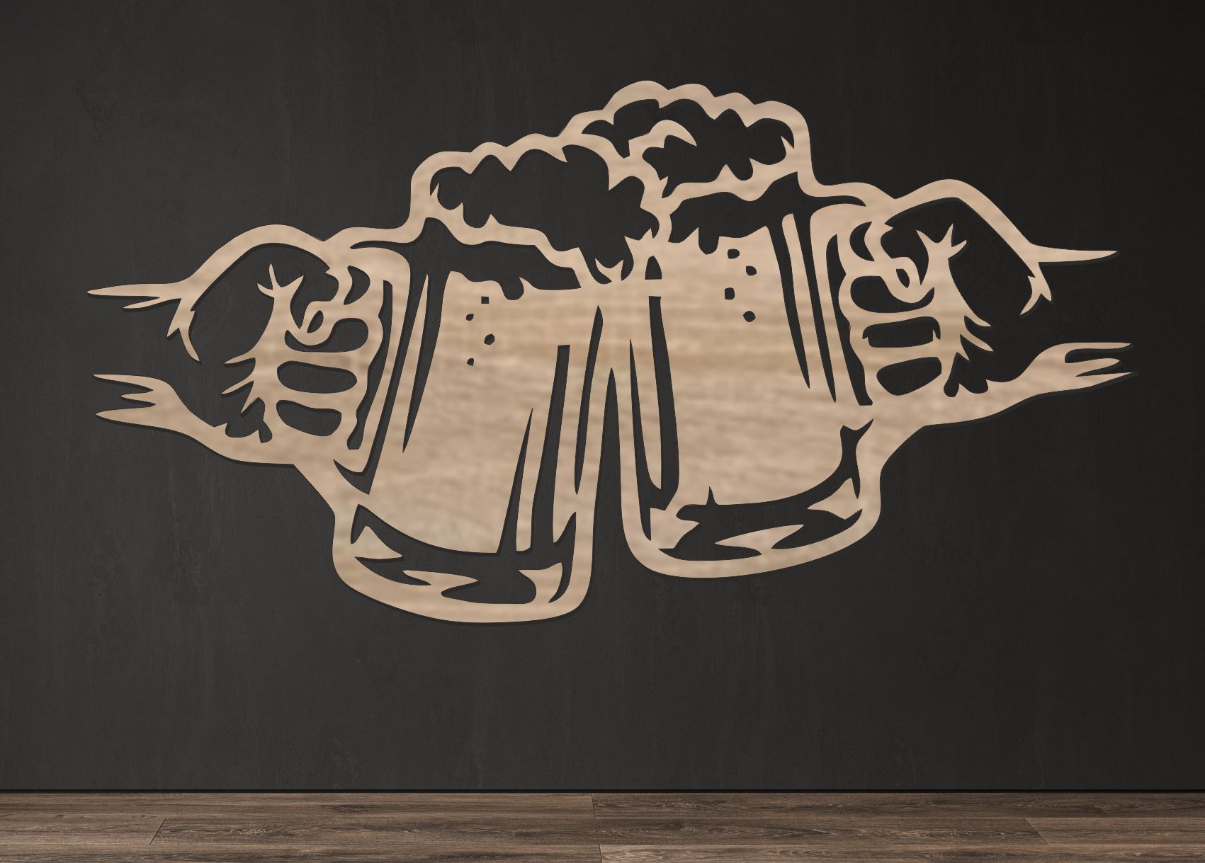 🍻 Dřevěný obraz – Pivní sklenice je nápaditá a veselá nástěnná dekorace, která navodí atmosféru společných večerů s přáteli. Dva cinkající půllitry plné pěny evokují oslavy, pohodu a radost ze života.