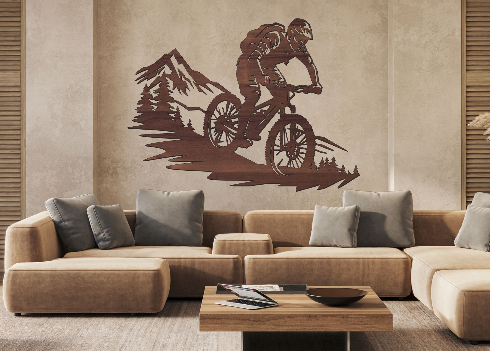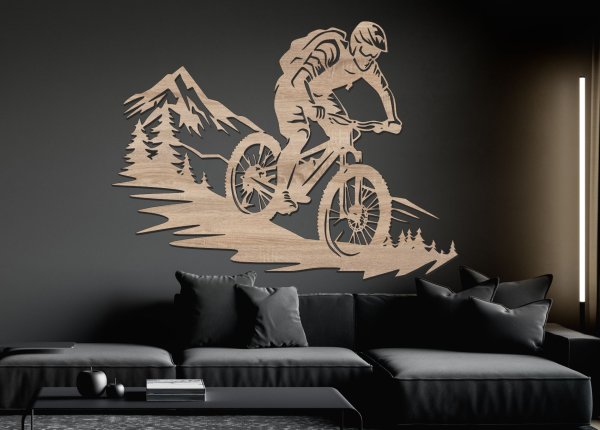 Tento dřevěný obraz sjezd z hor zachycuje adrenalin a sílu horské cyklistiky 🚵♂️. Postava jezdce při sjezdu symbolizuje odvahu, svobodu a vášeň pro pohyb. Vyřezaný z kvalitního HDF dřeva (3 mm), nabízí precizní detaily kola, hor i krajiny.Kontrast černé siluety a světlého podkladu vytváří moderní sportovní dekoraci vhodnou do interiéru i na chatu. Skvělý dárek pro cyklisty, sportovce i milovníky hor.