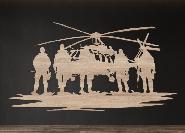 Tento dřevěný obraz speciálních jednotek zobrazuje sílu, disciplínu a jednotu elitních vojáků 💥. Silueta týmu před vrtulníkem představuje odvahu, připravenost a profesionalitu. Vyřezaný z kvalitního HDF dřeva (3 mm) s ostrými liniemi a kontrastním detailem, působí moderně a výrazně.Obraz je ideálním dárkem pro vojáky, veterány nebo milovníky vojenské historie a techniky. Krásně doplní pracovnu, klubovnu nebo stylový interiér.