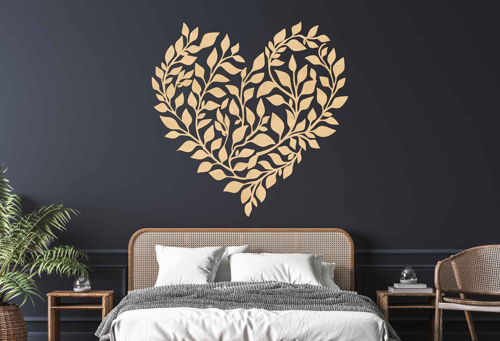🌿 Dřevěný obraz – Srdce z přírody spojuje symbol lásky s jemností přírody. Větvičky a lístky tvoří srdce, které přináší do interiéru harmonii, něhu a přírodní krásu.