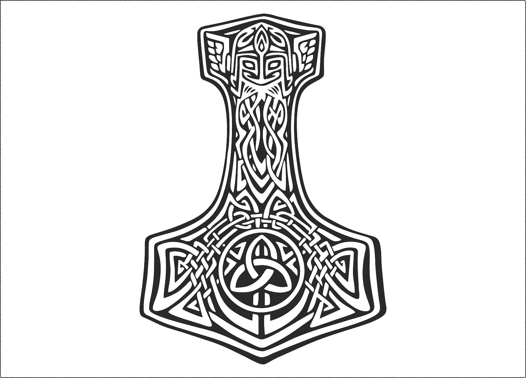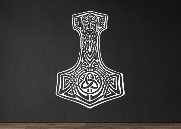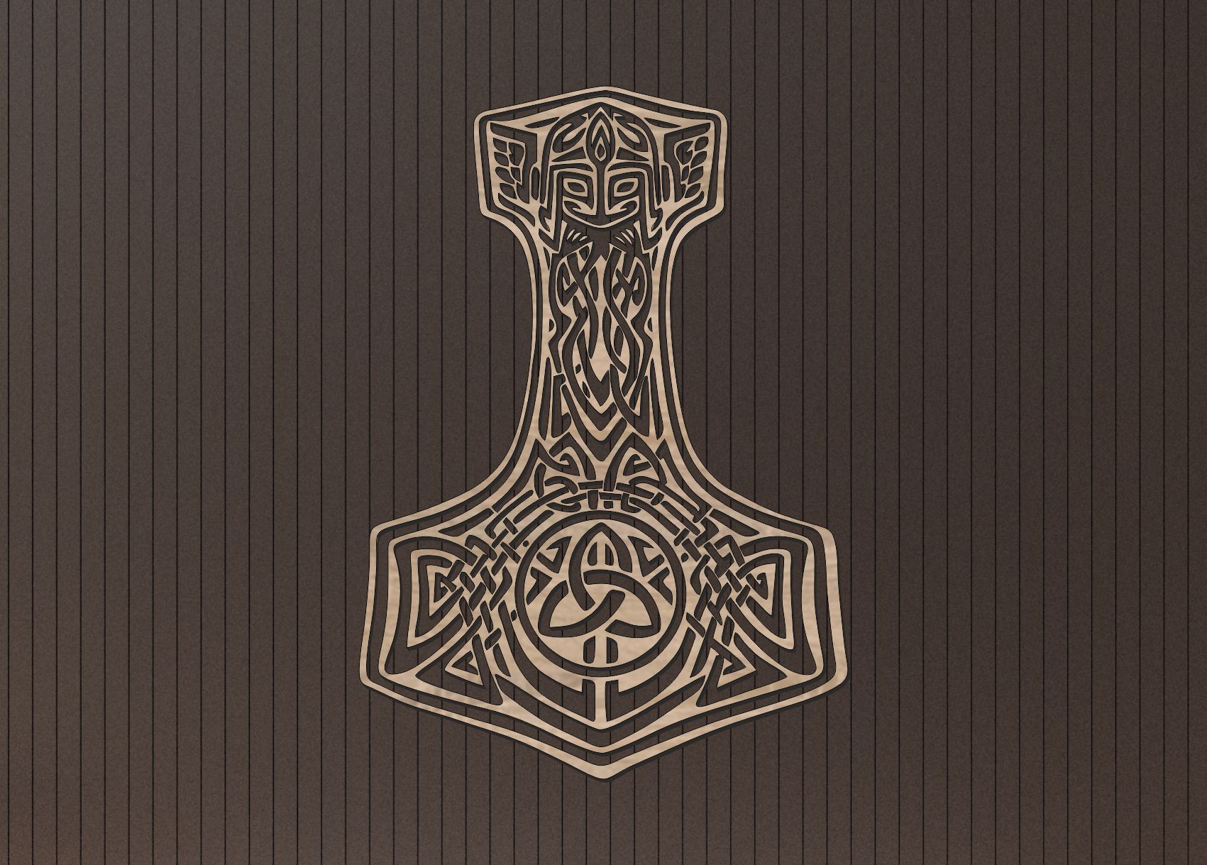 Dřevěný obraz s motivem Thorova kladiva – severská mytologie jako designový prvok ⚡