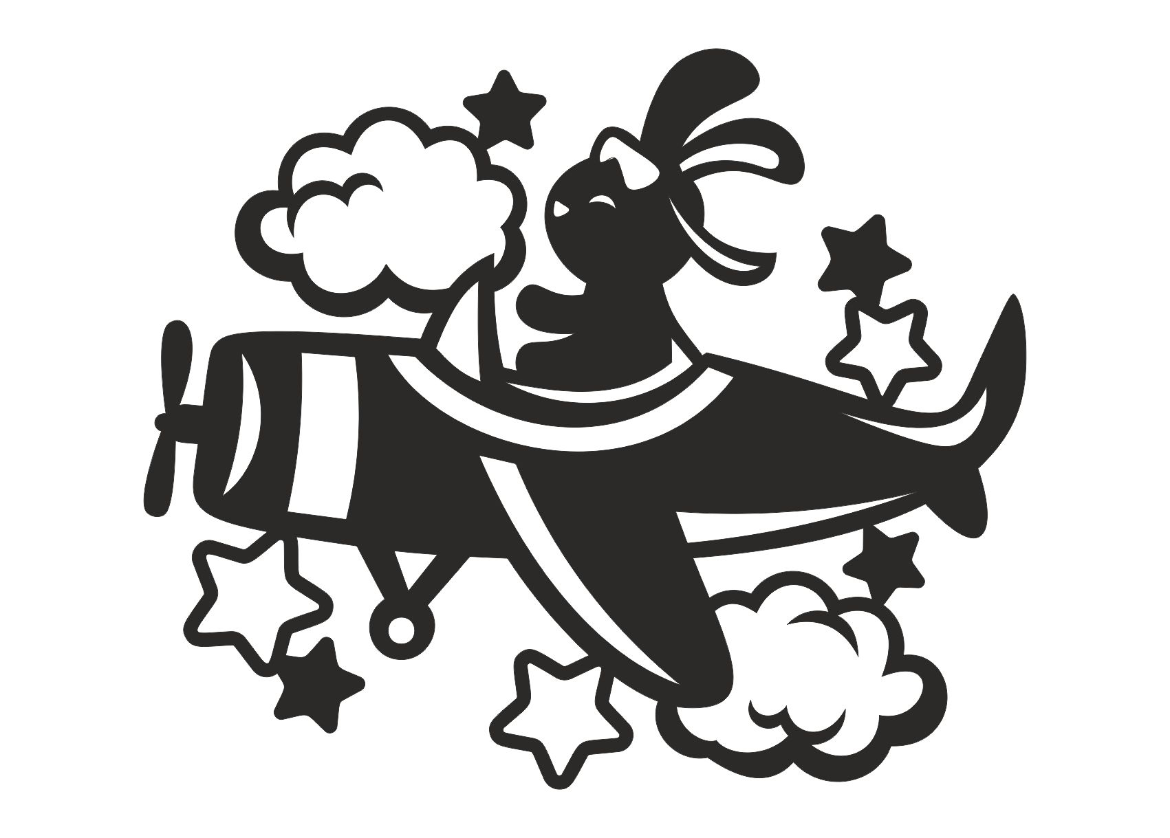 Dřevěný obrázek do dětského pokoje – králíček v letadle