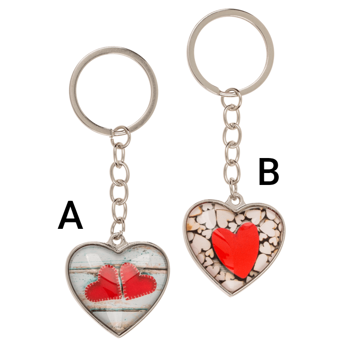 Kovový přívěsek na klíče – Skleněné srdíčko A