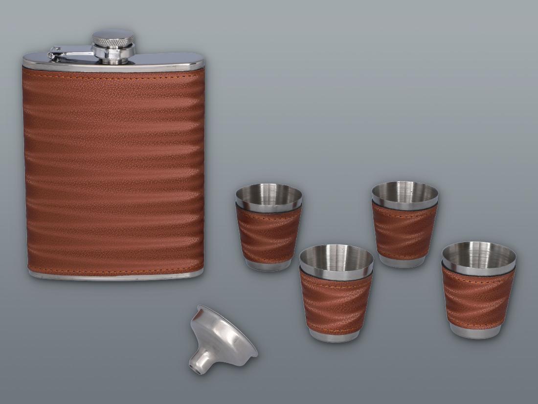 Ploskačka nerezová + 4ks štamperlíkov v darčekovej krabičke