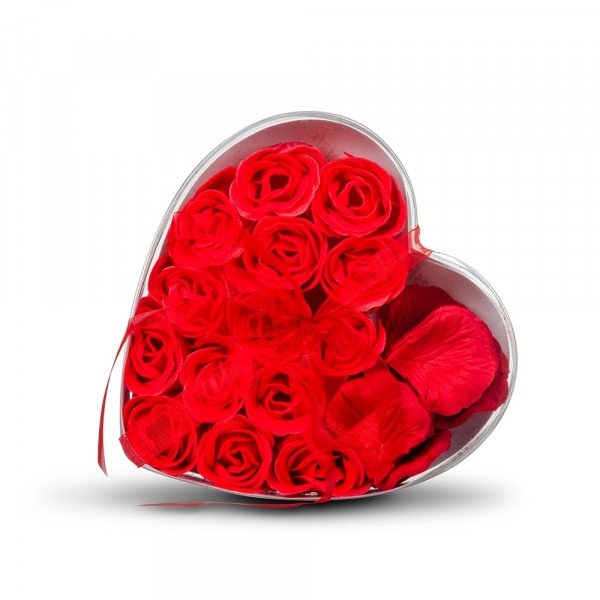 Obsah sady: 14 × mýdlo růže + 600 × okvětní lístek růže