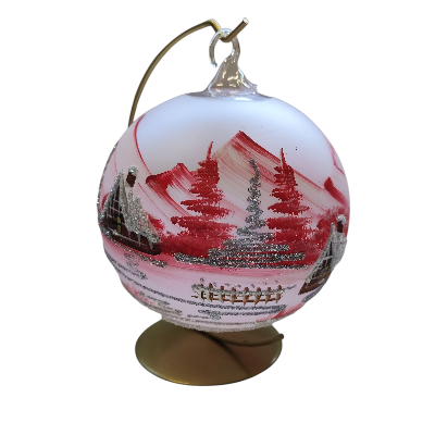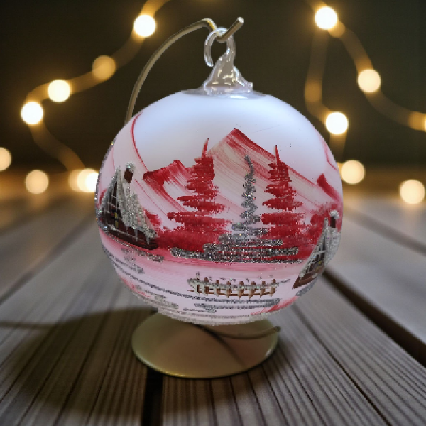 Prožijte klid zimní krajiny se skleněnou koulí na svíčku. Elegantní ručně malovaná dekorace s jemnými stříbrnými a bílými tóny vytváří iluzi třpytivého sněhu. Po zapálení svíčky se celá koule rozzáří teplým světlem a promění váš interiér v útulné zimní útočiště.