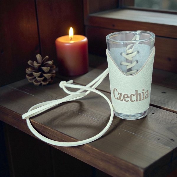 Elegantní skleněný panák s koženým obalem a nápisem „Czechia“ je skvělým suvenýrem pro turisty, cestovatele i každého, kdo chce ukázat hrdost na naši krásnou zemi. Ideální na oslavy, večírky, posezení s přáteli nebo jako originální dárek ze srdce Evropy.