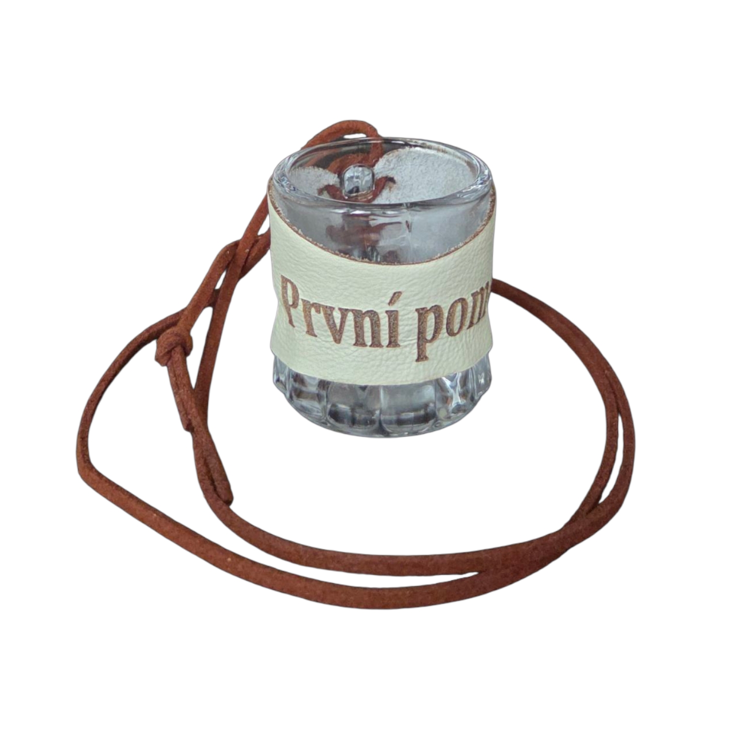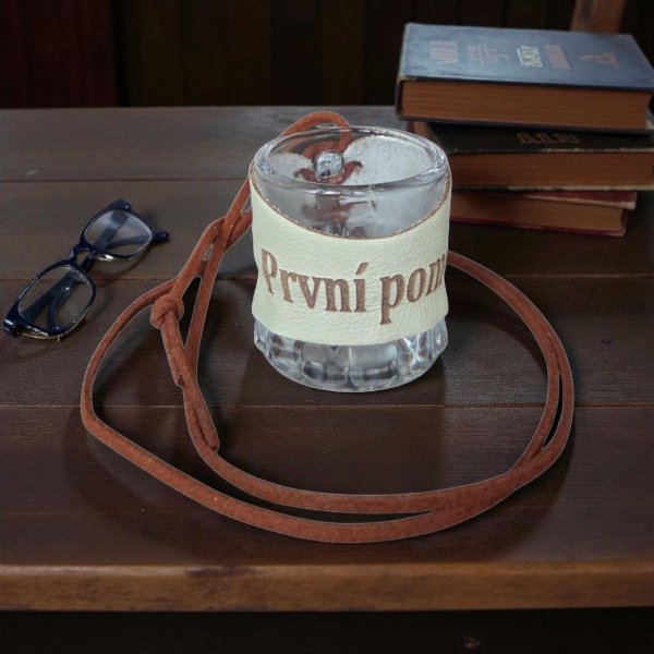 Skleněný panák s koženým obalem – První pomoc 🥃