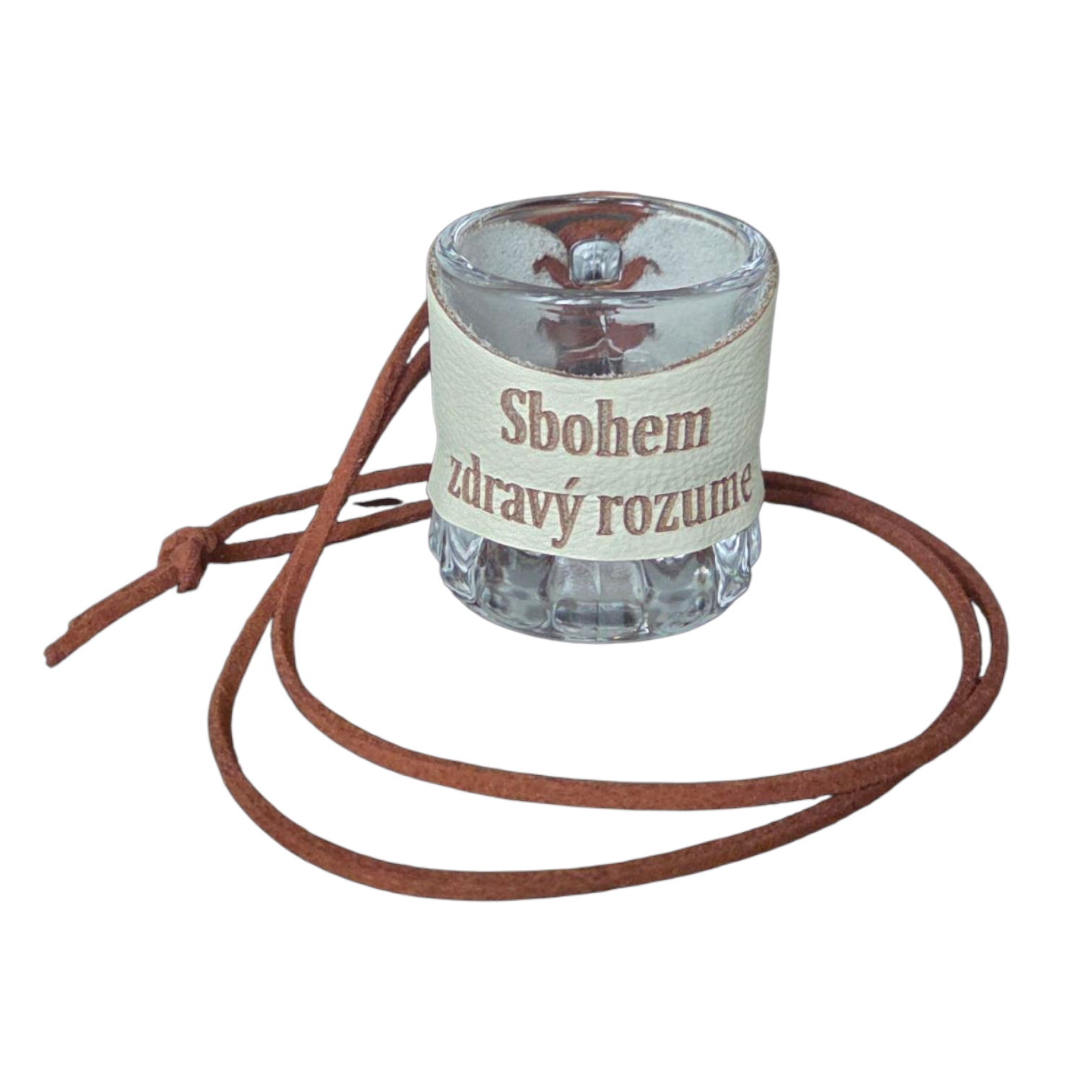 Skleněný panák s koženým obalem – Sbohem zdravý rozume 🥃