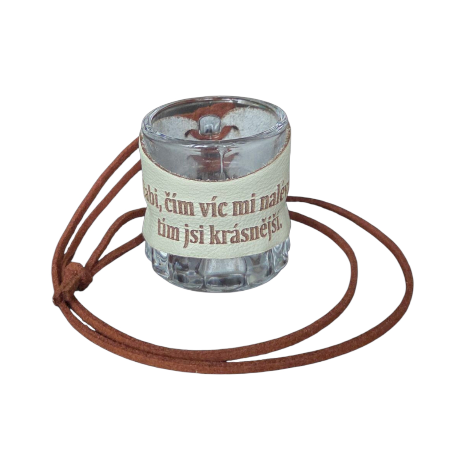 Skleněný panák s koženým obalem – Stará, čím víc mi naleješ, tím jsi krásnější 🥃