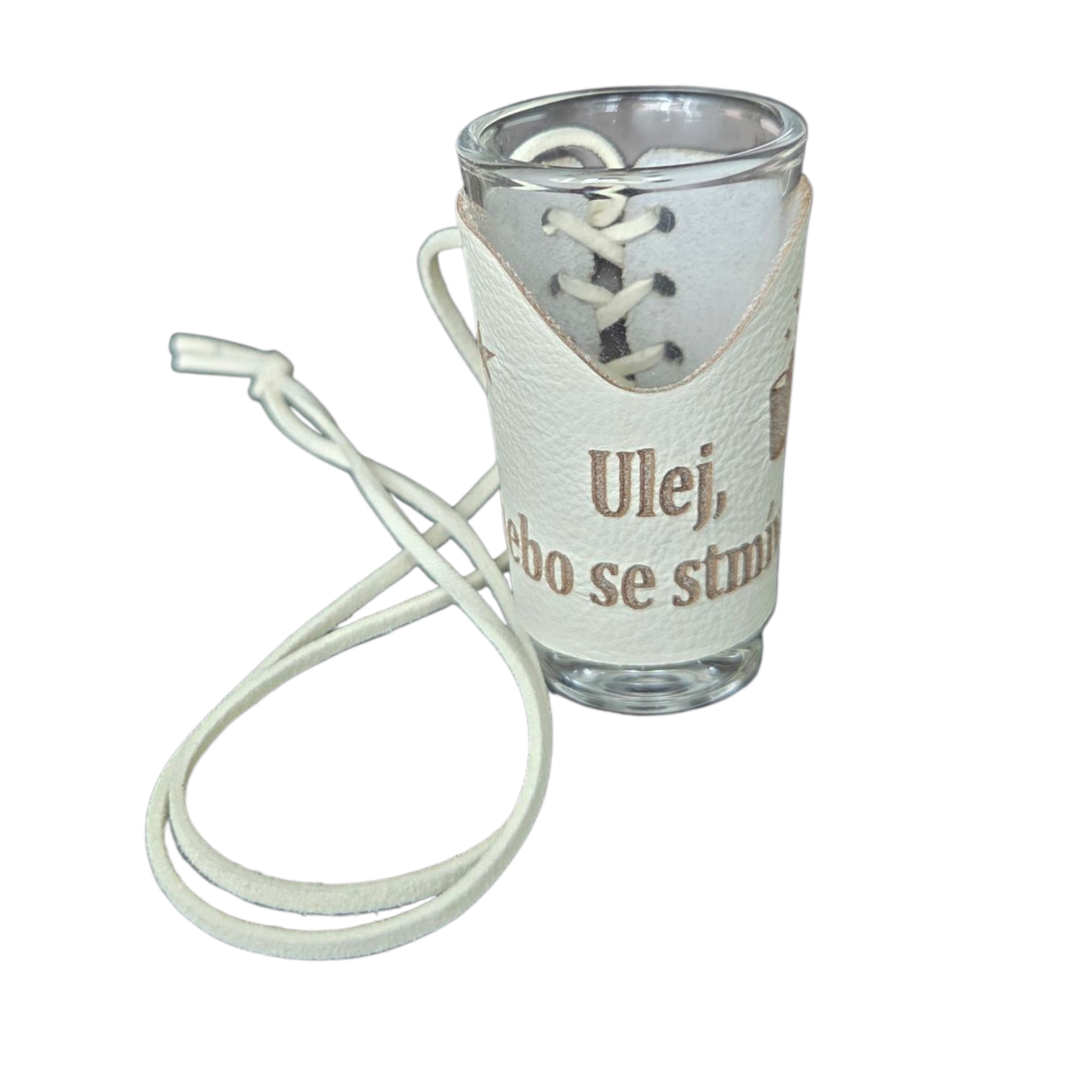 Skleněný panák s koženým obalem – Ulej, nebo se stmíva 🥃😆