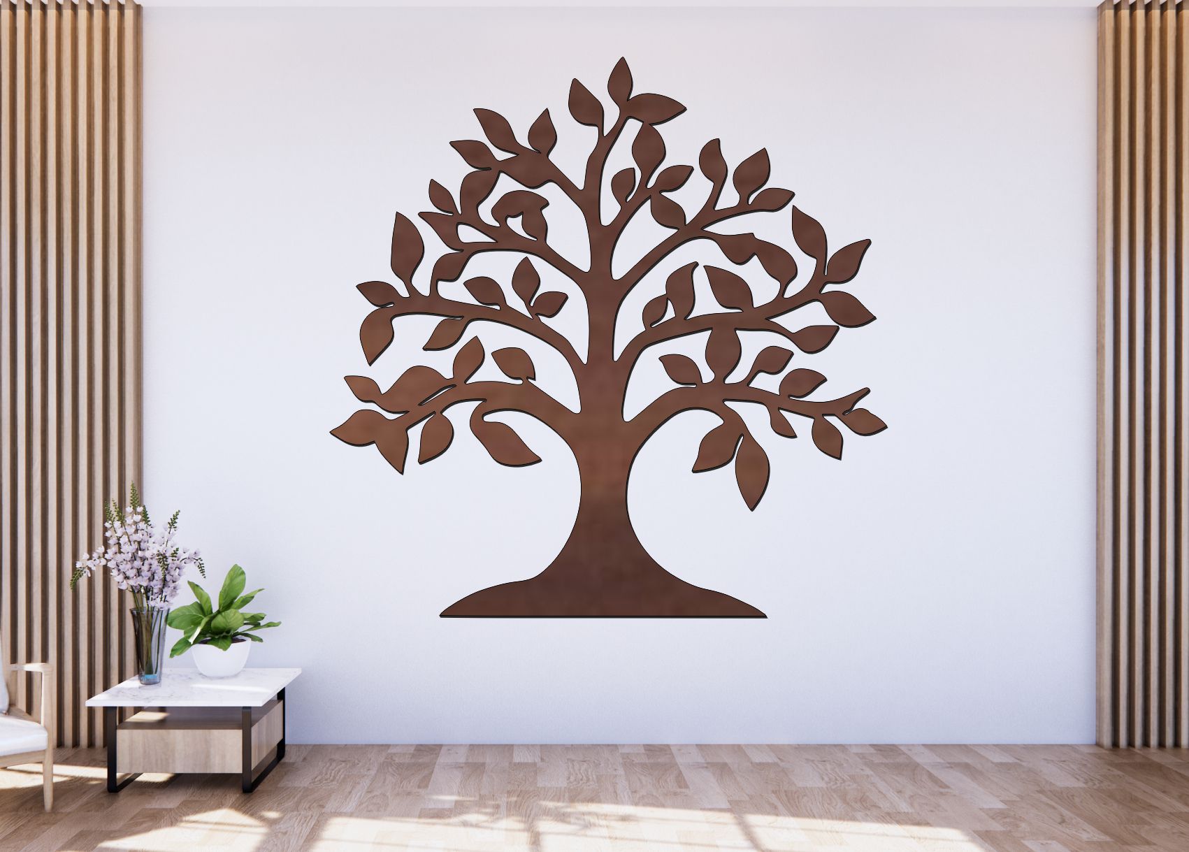 Koruna s propracovanými větvemi a výrazné kořeny zdůrazňují stabilitu a růst. Vyrobeno z kvalitního 3 mm HDF dřeva s precizním laserovým řezem.