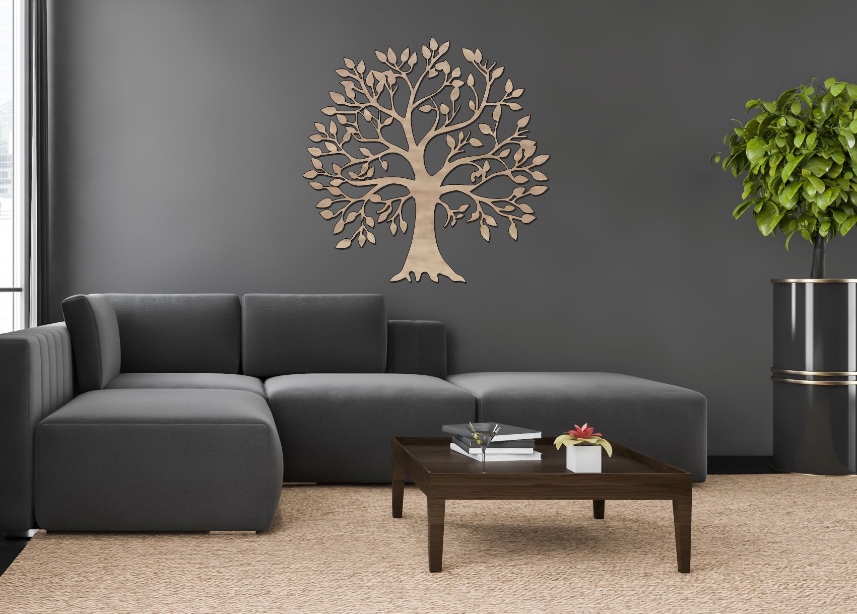 Drevený strom života na stenu z 3 mm HDF dreva. Moderná dekorácia s bohatou