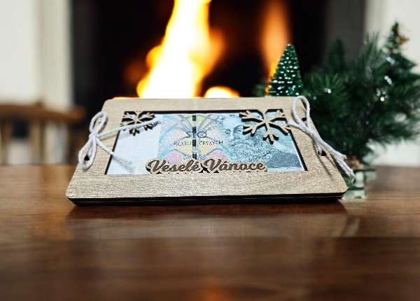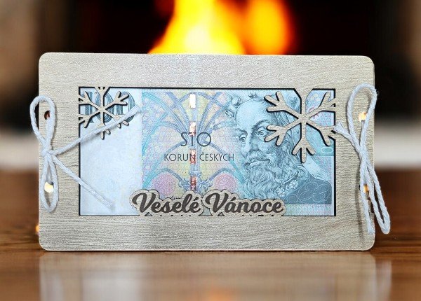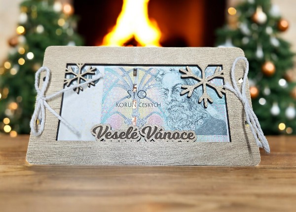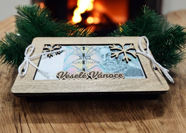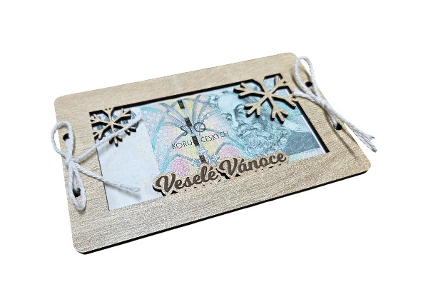 Vánoční dřevěná obálka na peníze – Veselé Vánoce