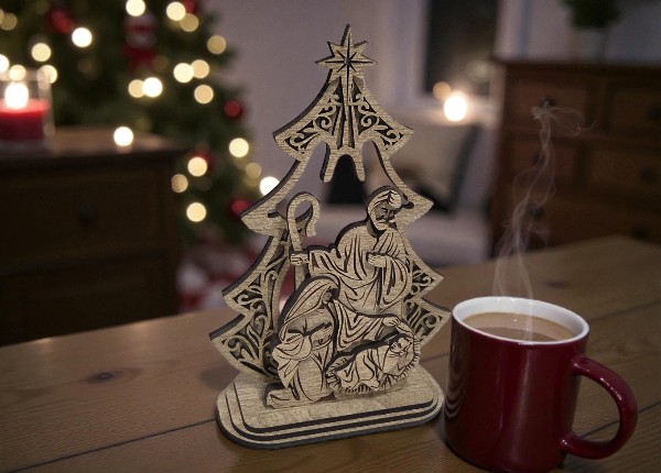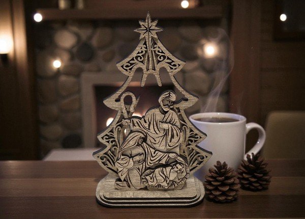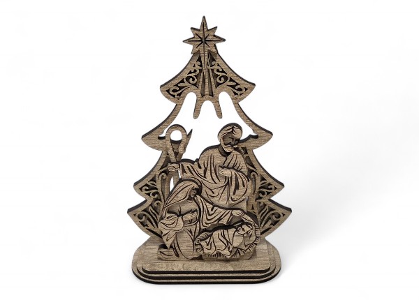 Dřevěný betlém – Svatá rodina pod vánočním stromkem