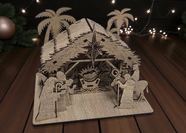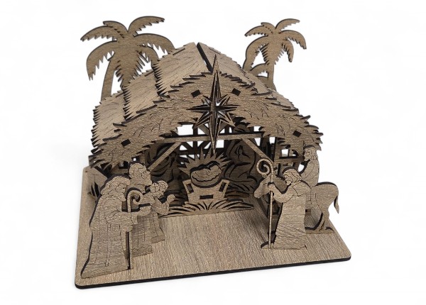 Exkluzivní vyřezávaný dřevěný betlém se stříškou – tradiční vánoční dekorace s jemnými detaily